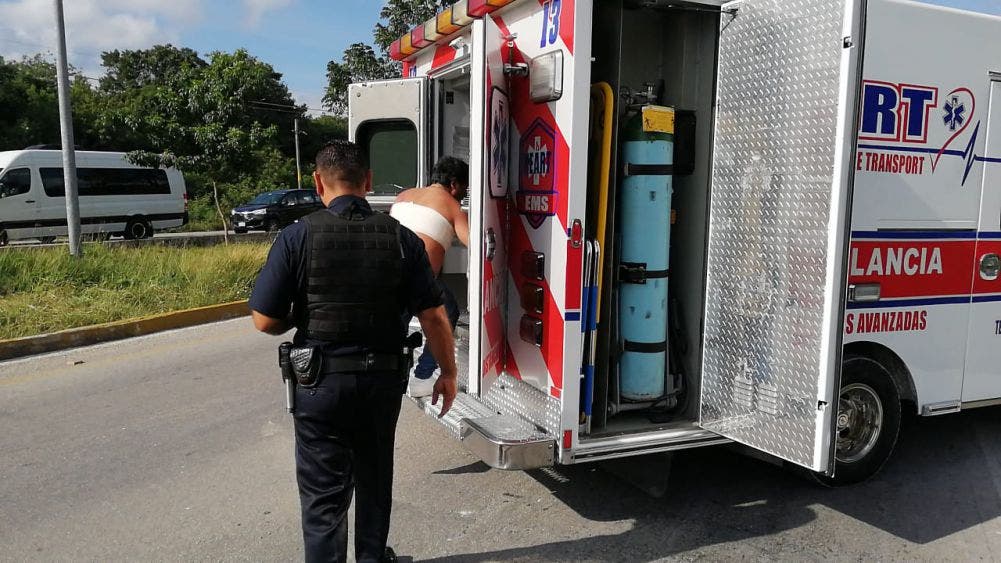 Paramédicos de diversas corporaciones llegaron en auxilio de los pasajeros y conductor éste último delicado de salud, todos fueron llevados a diversos hospitales de Cancún.