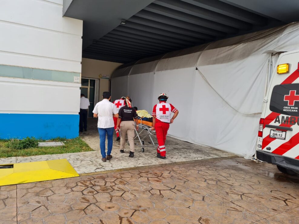 Los paramédicos y uniformados de la Policía Cancún llegaron poco después, trasladando a esta persona gravemente lesionado y con pronóstico delicado.