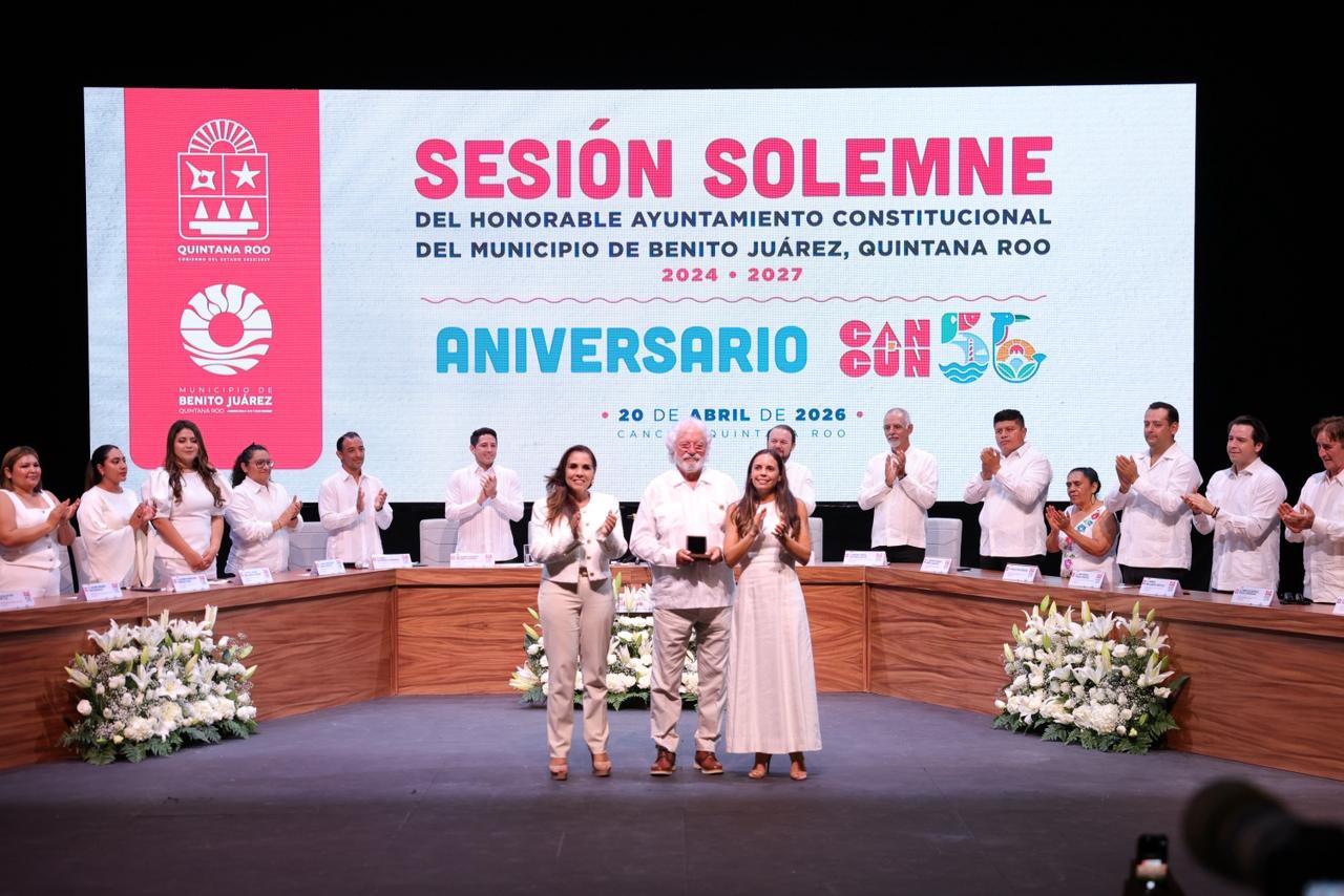 Cancún, Q. R., a 20 de abril de 2026.- “Hoy, en este 56 aniversario, hagamos un compromiso claro, dejar de ver a Cancún como un lugar y empezar a vivirlo como lo que es, nuestro hogar, nuestra responsabilidad y nuestro orgullo. Y decirlo fuerte, con convicción y con el corazón, Cancún no es de algunos ¡Cancún somos todas y todos! Que Cancún nos siga uniendo y que digamos con gran orgullo ´Yo soy Cancún, Soy Cancunense´. ¡Felicidades Cancún! Felicidades a todas y todos los cancunenses”, enalteció la Presidenta Municipal, Ana Paty Peralta, en la celebración del 56 Aniversario de la fundación de Cancún.
