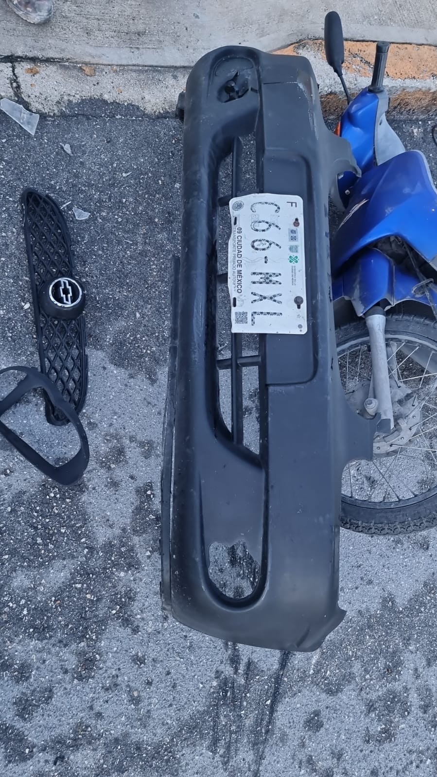 Asimismo, agentes de Tránsito que tomaron conocimiento de los hechos, levantaron la placa del automóvil que dejó tirada con la facia el responsable, mismo que se dio a la fuga.
