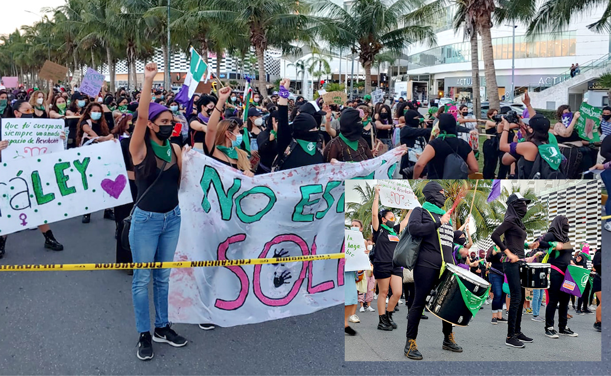 Casi dos centenares de mujeres de diversos colectivos feministas, iniciaron una caminata para protestar exigiendo la despenalización del aborto, por algunas de las principales avenidas de Cancún, la «mega marcha» feminista arrancó desde el malecón Tajamar.