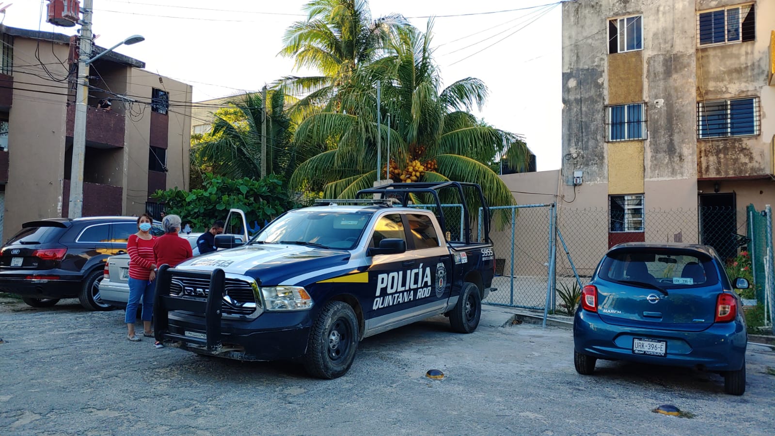 Elementos de la Policía Cancún ya se encuentran en este lugar, donde en uno de los departamentos fue encontrado el cuerpo envuelto en unas sábanas, gracias a los olores característicos de la putrefacción humana.