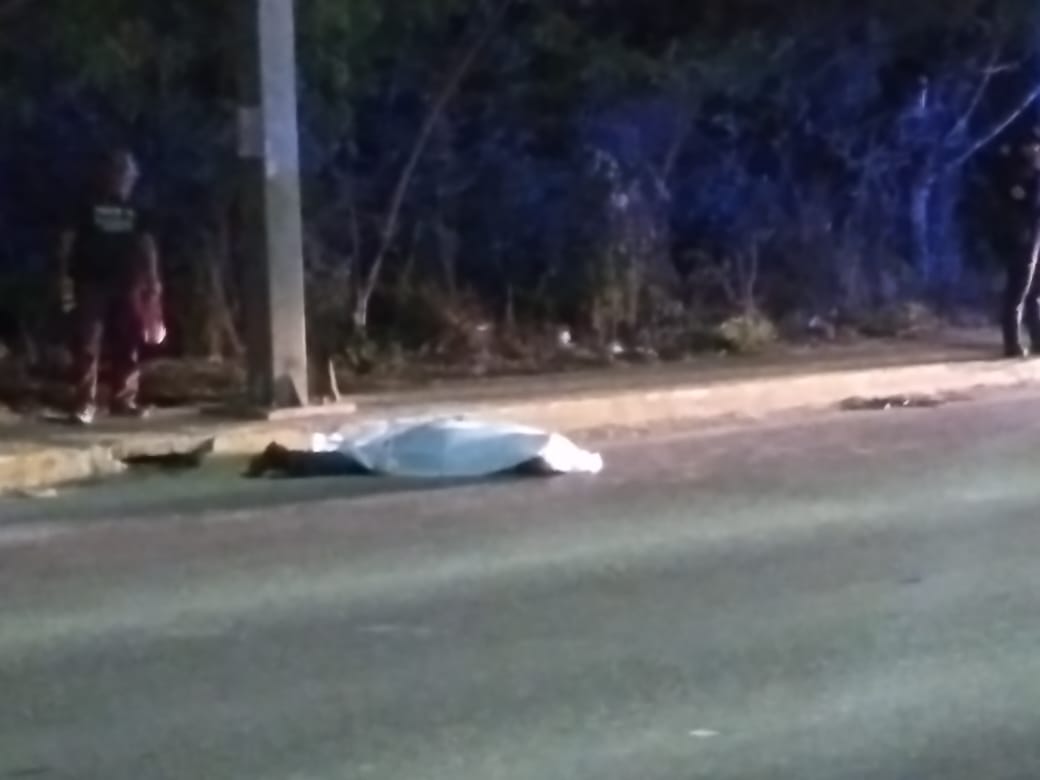 Un despistado motociclista pierde la vida al volarse un paso peatonal en la carretera Cancún-Merida a la altura de la Ciudad de la Alegría en la súper manzana 105.