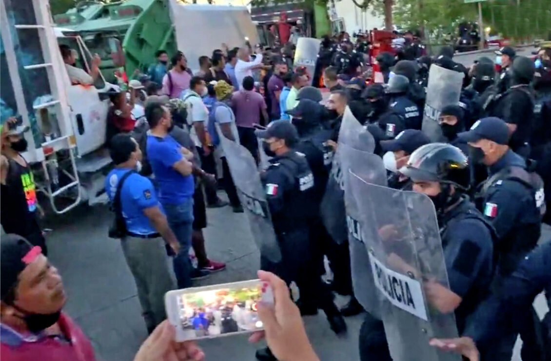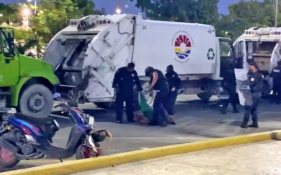 Policía Quintana Roo se enfrenta a recolectores de basura