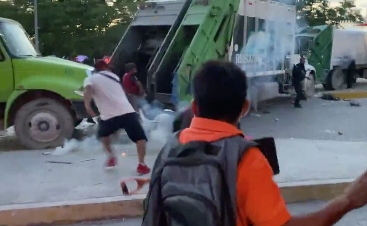 Ante la falta de acuerdos entre las autoridades y los manifestantes de la empresa recolectora de basura «Inteligencia México» que mantuvieron bloqueada la avenida Tulum usando sus camiones, elementos de la Policía Quintana Roo se enfrentaron con los manifestantes desalojándolos violentamente.