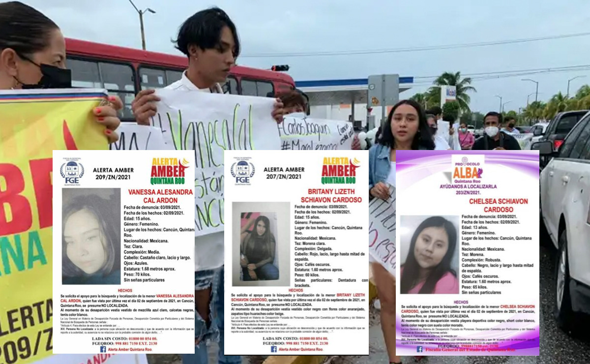 Las tres chicas, dos de ellas hermanas, desaparecieron desde el jueves pasado cuando salieron juntas a tomar un helado a la Plaza Héroes ubicada en la super manzana 225, en la confluencia de las avenidas «0 de noviembre y Chac Mool.