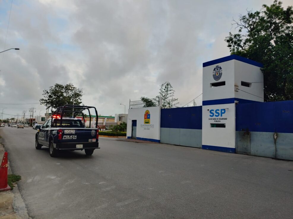Un contingente de entre setenta a ochenta taxistas del sindicato «Andrés Quintana Roo», se manifiestan en las afueras de la base de la Policía Quintana Roo en la Super Manzana (SM) 501 de Cancún, donde protestan convocados por sus líderes.