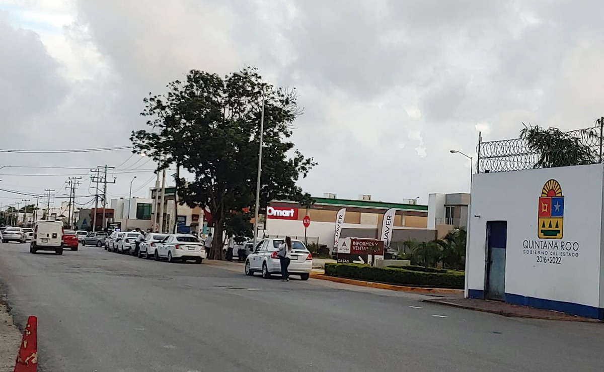 Un contingente de entre setenta a ochenta taxistas del sindicato «Andrés Quintana Roo», se manifiestan en las afueras de la base de la Policía Quintana Roo en la Super Manzana (SM) 501 de Cancún, donde protestan convocados por sus líderes.