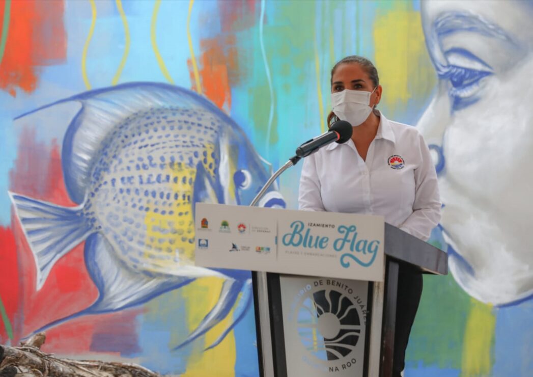 La Presidente Municipal Mara Lezama, hizo entrega simbólica de reconocimientos a los muralistas que plasmaron en las playas públicas obras con mensajes de conciencia ambiental que podrán contemplar tanto locales como turistas y, posteriormente, se realizó el izamiento de bandera Blue Flag, acto con el que se dio inicio a la temporada 2021-2022.