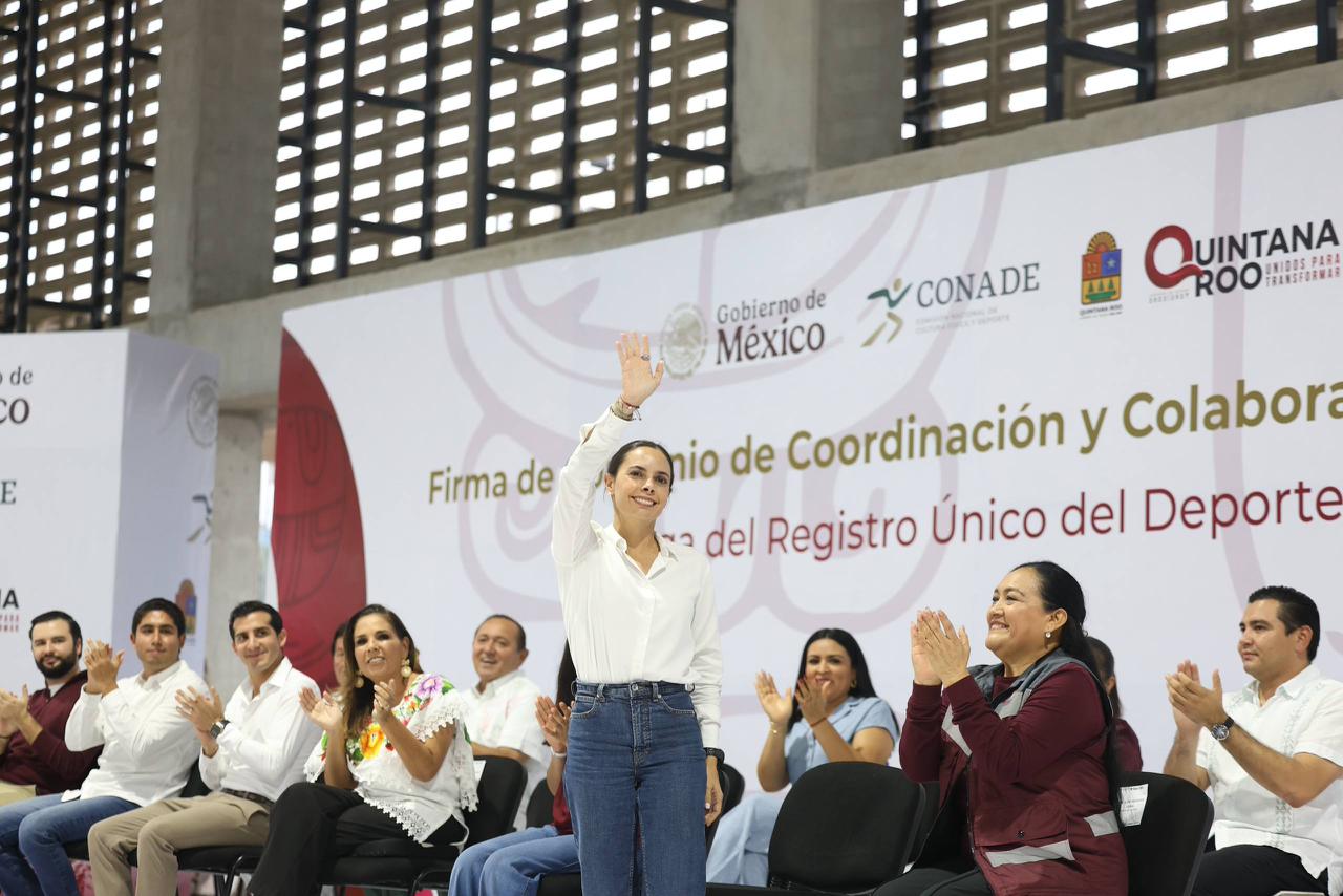 Cancún, Q. R., a 13 de noviembre de 2025.- En un hecho histórico para el municipio y como parte del impulso nacional al deporte, la presidenta municipal, Ana Paty Peralta, recibió el Registro Único del Deporte (RUD) por parte de la Comisión Nacional de Cultura Física y Deporte (Conade), durante la Firma del Convenio de Coordinación y Colaboración Conade–Comisión del Deporte de Quintana Roo (Codeq), encabezada por la gobernadora, Mara Lezama.