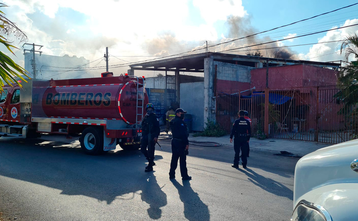 Un voraz incendio estalló en la parte trasera de una empresa recicladora ubicada en la super manzana (SM) 228 de la ciudad de Cancún, elementos del Heroico Cuerpo de Bomberos ya trabajan en el lugar.