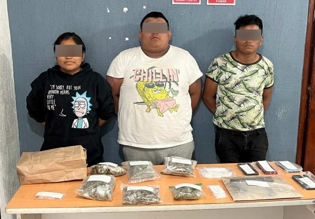 Los detenidos son Geovani Martín “N”, Mónica Sofía “N” y Urías Nahúm “N”, a quienes policías de Investigación adscritos a la Fiscalía Especializada en Delitos contra la Salud en su Modalidad de Narcomenudeo interceptaron cuando circulaban por calles de la Supermanzana 220 de Cancún.