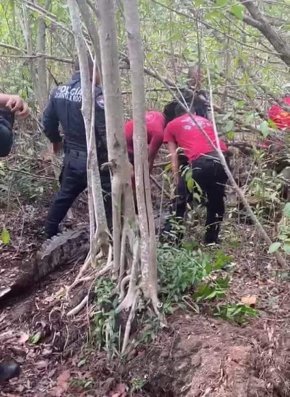Allí fueron informados de que un sujeto del sexo masculino se encontraba presuntamente nadando dentro de la laguna, pero al acudir los oficiales al lugar mencionado para solicitarle que saliera de la laguna, se percataron de que era arrastrado hacia el manglar por un reptil.