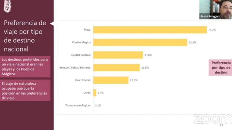 Según el estudio Intención de Viaje Post Covid del IPN, presentado a través de la Sectur, por sus coordinadores Alberto Reyes y Jesús Aragón, jefe del departamento de investigación del IPN, las playas tienen el 77 por ciento de la intención de viajes, los pueblos Mágicos el 63 por ciento y las ciudades coloniales el 33 por ciento.