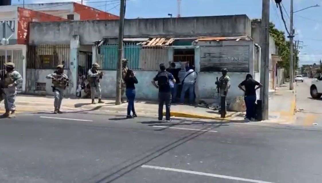 Esta tarde de martes, elementos de seguridad de los tres niveles de gobierno llevaron a cabo un cateo en un domicilio de la Supermanzana 67 de Cancún.