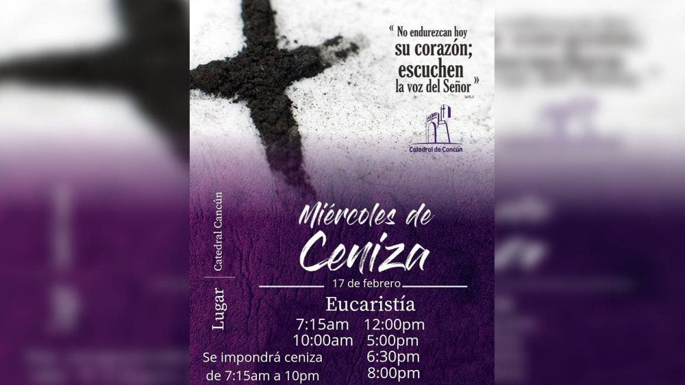 Este miércoles 17 de febrero la iglesia católica realizará la imposición de ceniza, lo que enmarca el inicio de la cuaresma, previo a la Semana Santa. Para el caso la Catedral de Cancún, esta actividad se realizará todo el día, a partir de las 7:15 y hasta las 22:00 horas.
