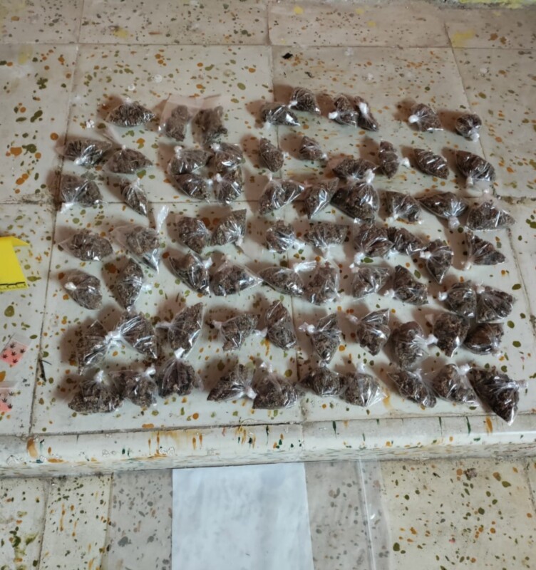 También aseguraron una báscula gramera y dos recipientes metálicos para triturar hierba. En este lugar fue detenido Wilberth Isaí «N», quien al momento de la revisión tenía en su posesión una bolsa de nylon que contenía hierba verde y seca, similar a la marihuana.