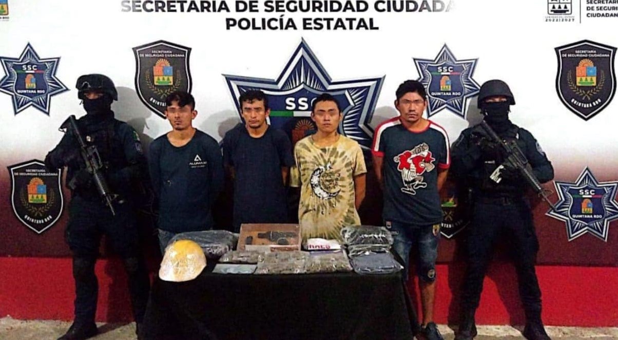 En Cancún fueron detenidos cuatro sujetos por su presunta responsabilidad en los delitos contra la salud y portación ilegal de arma de fuego, según informó la Policía.