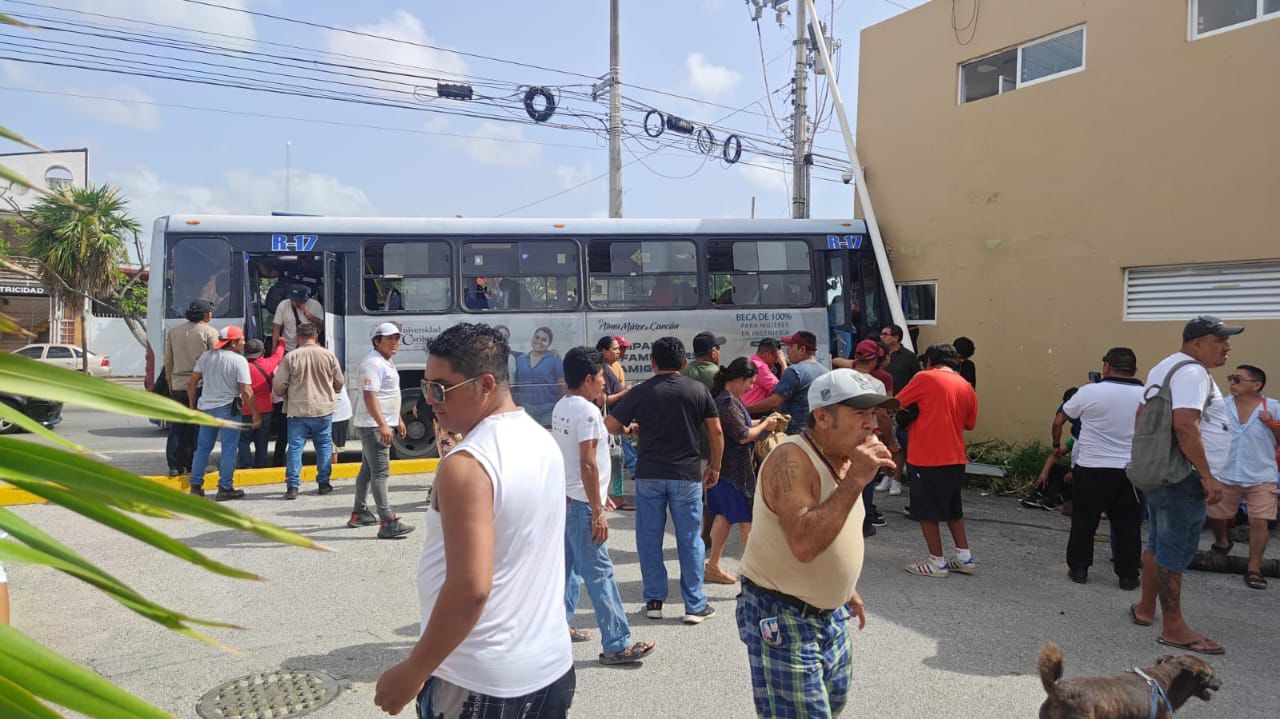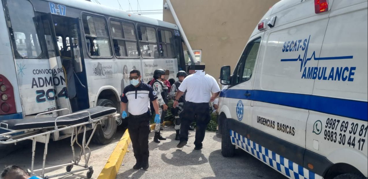 La mañana de este martes se registró un fuerte accidente de tránsito en la avenida Kabah con Leona Vicario, en donde al menos una treintena de pasajeros de un autobús del servicio público resultaron lesionados.
