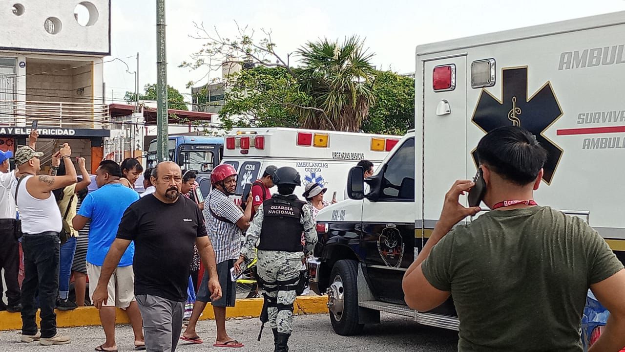 Choca autobús contra muro en una gasolinera de la Leona Vicario y Kabah; al menos 30 pasajeros heridos