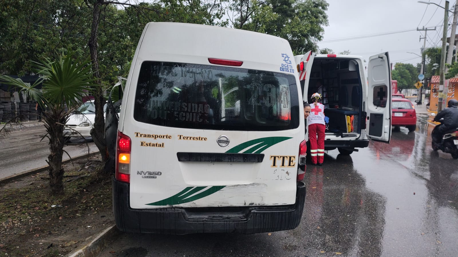 Choca combi de pasajeros contra un árbol en la Región 247 de Cancún; por la imprudencia del conductor, dos pasajeras resultaron lesionadas.