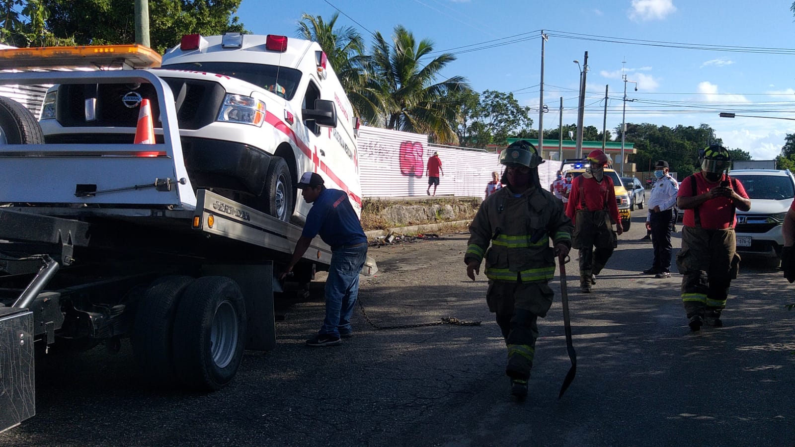 Esta mañana, una ambulancia de la Cruz roja se vio implicadas en un accidente vial en el fraccionamiento Paseos Kabah de Cancún.