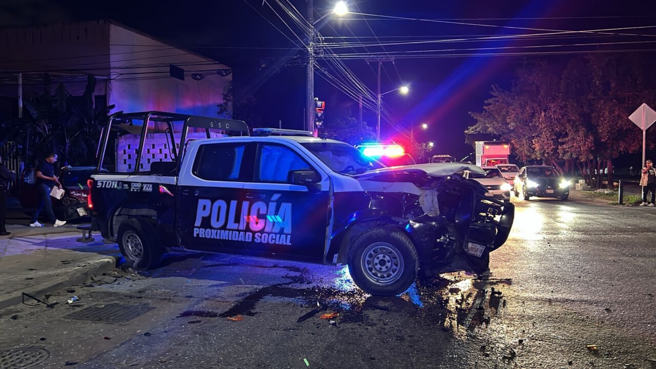 La noche del miércoles, dos patrullas de la Policía Municipal y un vehículo particular chocaron en la avenida 20 de Noviembre de Cancún, cuando las autoridades se encontraban en un operativo de persecución.