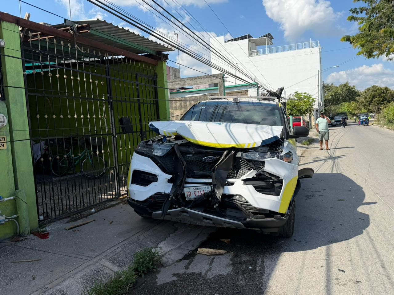 Una patrulla de la Policía Municipal se vio involucrada esta mañana en un fuerte accidente de tránsito en el fraccionamiento Villas del Mar III, en la Supermanzana 248 de Cancún.