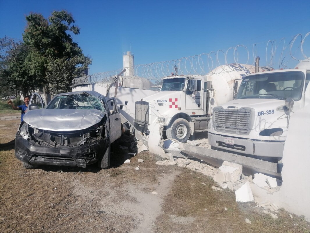 Asimismo, continúa su trayectoria hasta chocar contra un muro de concreto, derribándolo y ocasionando daños a dos camiones que se encontraban estacionados al interior de una propiedad de Concretos Cruz Azul.