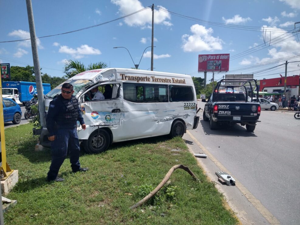 El pésimo mantenimiento a un vehículo Urvan del servicio público en Cancún, fue el detonante para que la unidad provocara un choque múltiple sobre la avenida López Portillo al cruce de la avenida Nichupté.