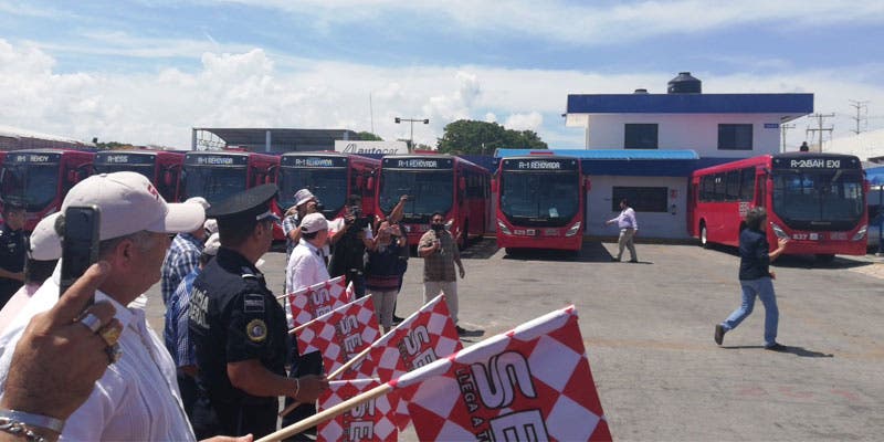 El delegado, junto con los directivos de las tres empresas, Santiago Carrillo Sánchez, de Autocar; Vicente Noya Cruz, de Turicun, y Erasmo Abelar Cámara, secretario general de Maya Caribe, dio el banderazo de salida a los automotores y después destacó la importancia de mejorar la calidad del servicio del transporte urbano.