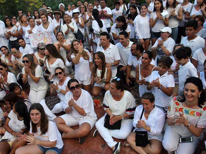 Aproximadamente 300 personas realizaron una cadena humana para pedir por la Paz y la Seguridad de Cancún, en la avenida Bonampak.