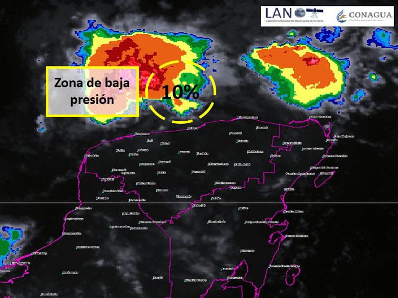 Clima: Continuarán los chubascos en Quintana Roo; se mantiene un canal de baja presión localizada sobre la porción central de la Península de Yucatán, en su amplia circulación periférica impulsa aire marítimo tropical con variable contenido de humedad hacia la región.