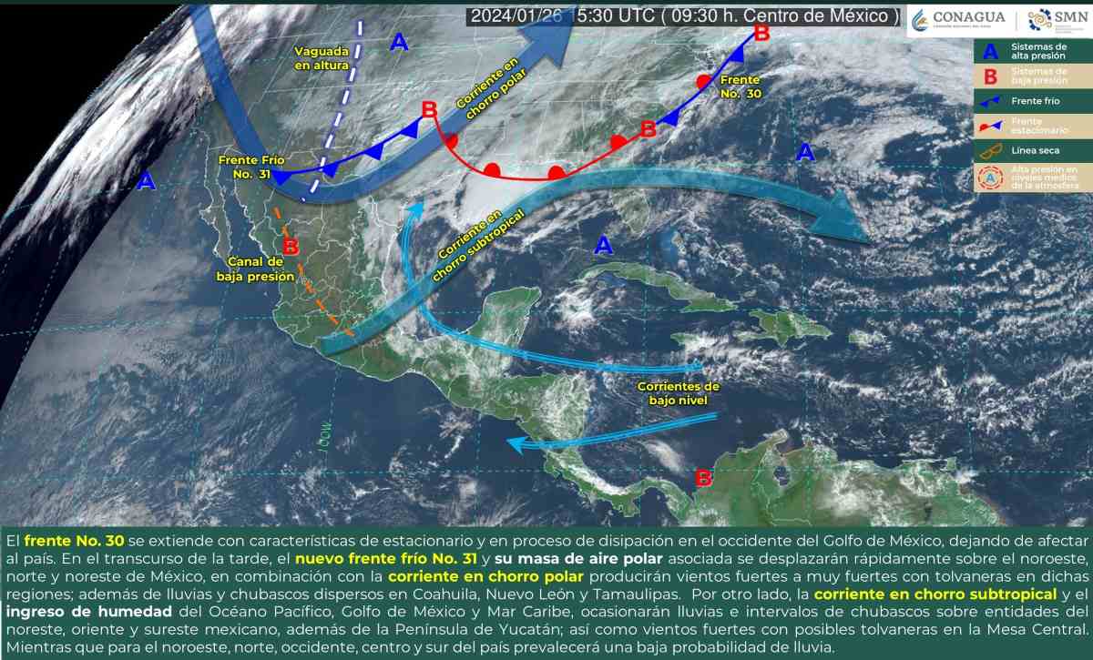 La Comisión Nacional del Agua (Conagua) y el Servicio Meteorológico Nacional (SMN), alerta a la población sobre la llegada de un nuevo frente frío a territorio quintanarroense, el número 31, que a partir de la tarde-noche del sábado se sentirán su efectos y durante domingo disminuirán paulatinamente.