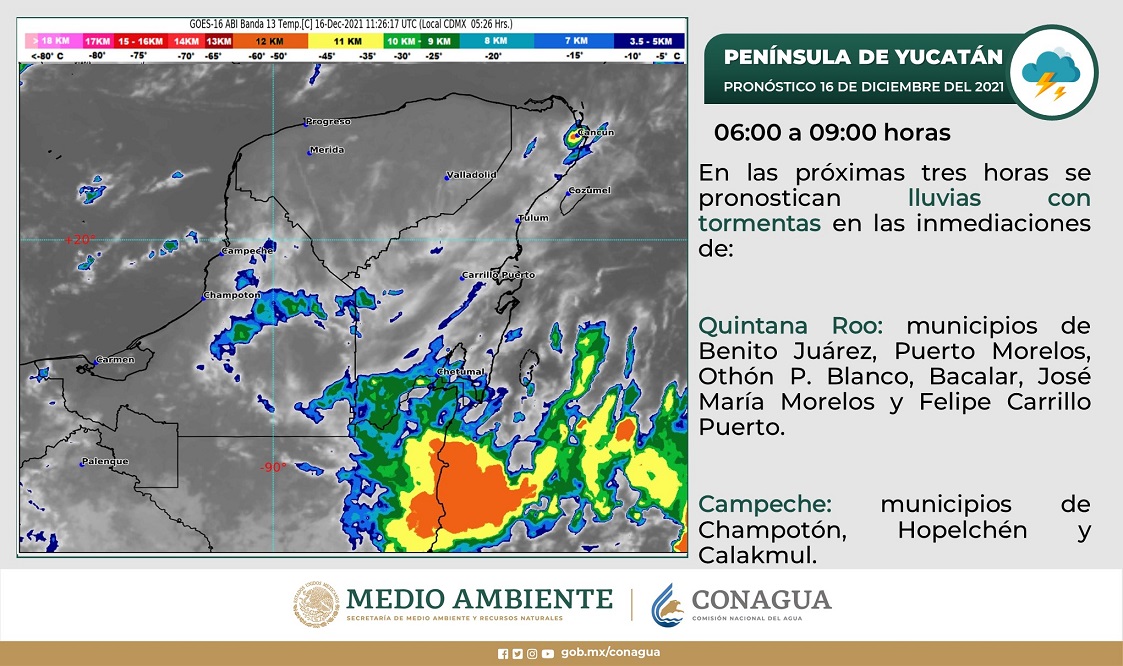 Clima: Intervalos de chubascos y lluvias para hoy en Quintana Roo. Este jueves 16 de diciembre, el frente frío número 14 se extenderá con características de estacionario sobre la frontera norte de México, interaccionará con una línea seca sobre Coahuila y generará vientos con rachas de 50 a 60 km/h en Coahuila y Nuevo León.