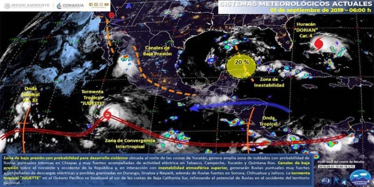 Ello generará temperaturas calurosas, nubosidad y lluvias aisladas con algunos chubascos ocasionales y actividad eléctrica sobre algunas localidades de la citada Península y al norte y centro del estado de Quintana Roo.
