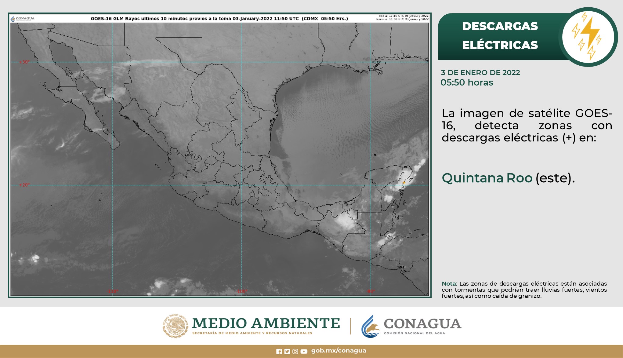 Evento de “Norte” con rachas de 100 a 120 km/h: Istmo y Golfo de Tehuantepec, con rachas de 70 a 80 km/h: costas de Veracruz y Tabasco, y con rachas de 60 a 70 km/h: costas de Campeche, Yucatán y Quintana Roo (norte).