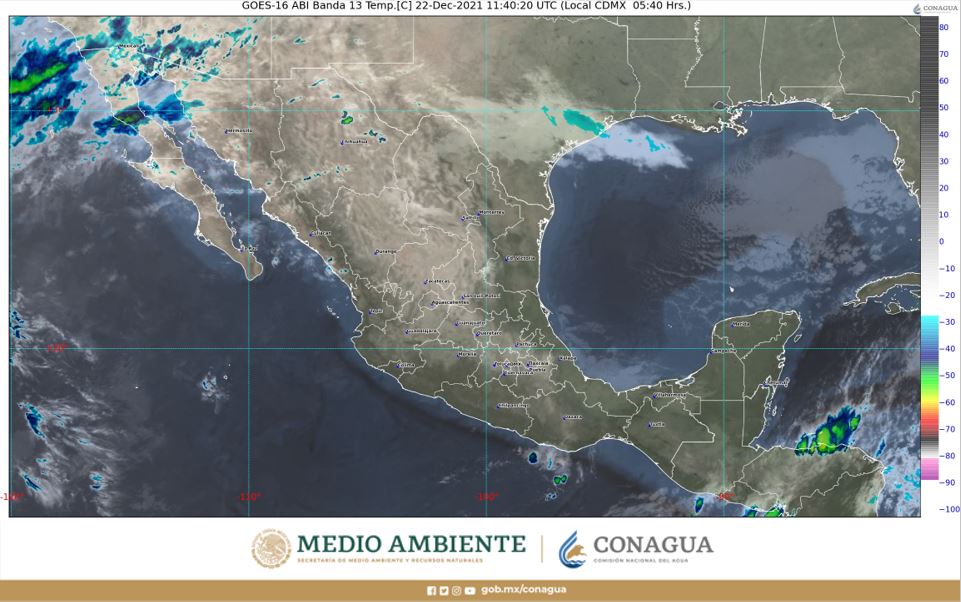 Por otra parte, una circulación anticiclónica en niveles medios de la atmósfera ocasionará disminución de las lluvias sobre la mayor parte del territorio nacional, así como un ascenso gradual de las temperaturas diurnas; sin embargo, mantendrá ambiente frío a muy frío con heladas matutinas, en zonas del norte, centro y oriente del país.