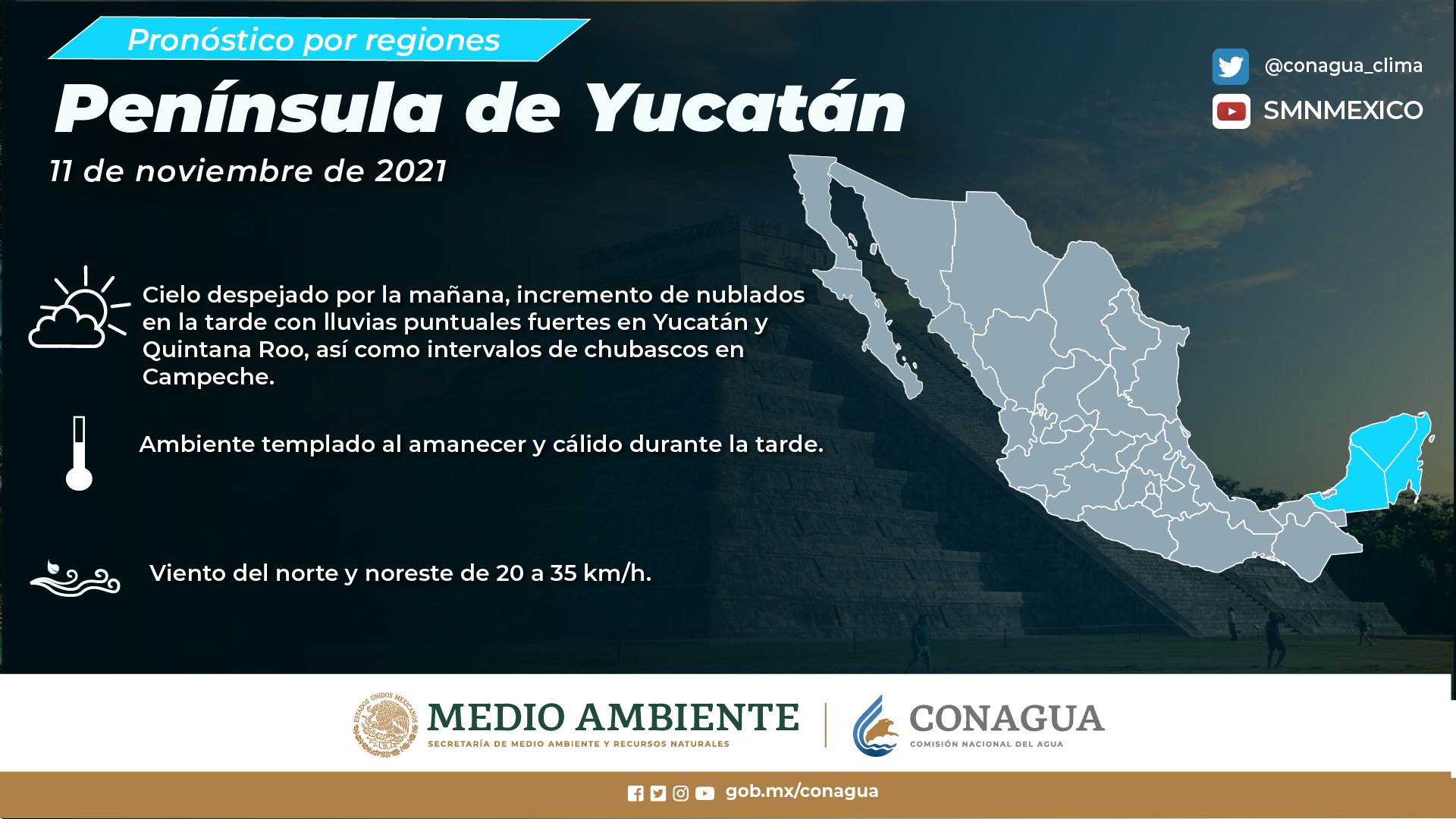 En el video #Pronóstico del #SMNmx te informamos las condiciones del tiempo para esta noche y madrugada. pic.twitter.com/vMRWHJGSIK— CONAGUA Clima (@conagua_clima) November 11, 2021