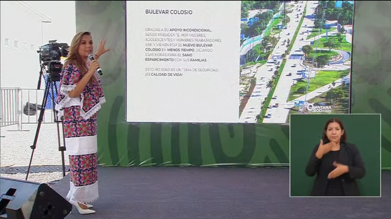 Mara Lezama destacó los resultados de la ampliación del bulevar Colosio, quienes tienen menos tiempo de traslado y más horas con su familia; se construye la emblemática obra del puente de la laguna Nichupté, así como obras de movilidad como la ampliación de la avenida Chac Mool.
