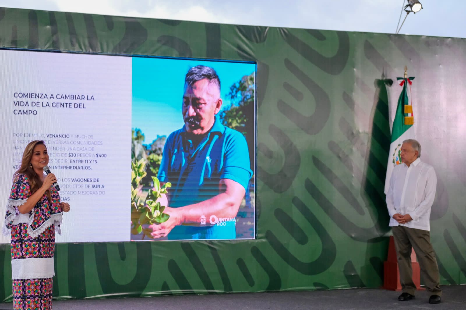 La Gobernadora citó el caso de Venancio, que se dedica al cultivo de limón, que ya logró vender una caja que antes tenía un precio de 30 pesos, a 400 pesos, entre 11 y 15 veces más, sin intermediarios, “Imagínense cuando los vagones de carga lleven sus productos de sur a norte por todo el estado, mejorando aún sus ganancias”, ilustró.