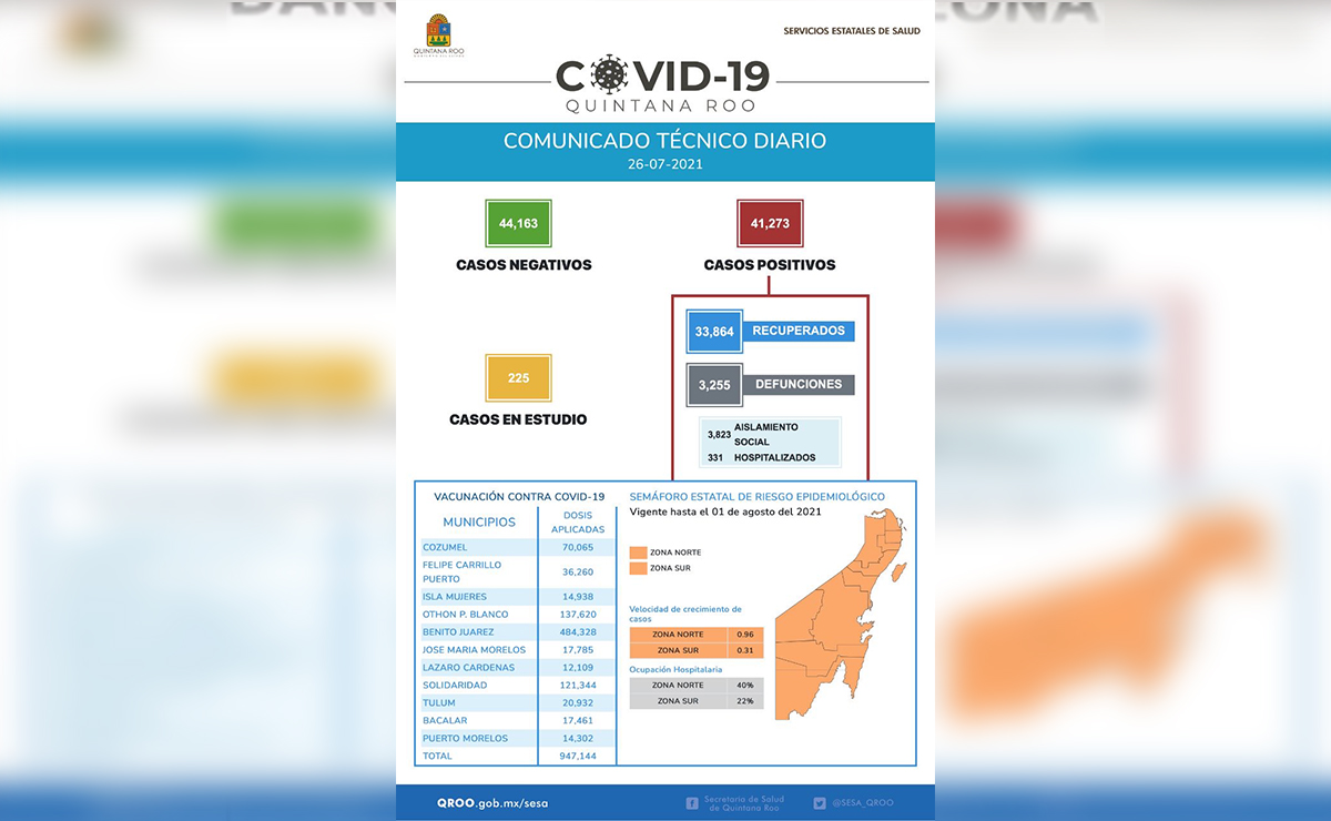 Con 41 mil 272 contagios, insta Sesa Quintana Roo a continuar con hábitos de higiene