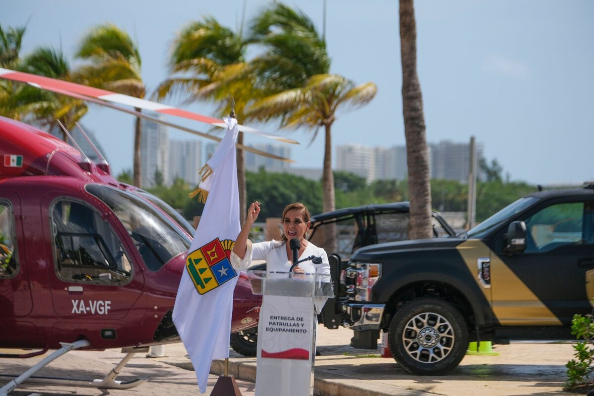 Con una inversión histórica de más de 2 mil millones de pesos la gobernadora Mara Lezama Espinosa entregó 689 unidades vehiculares, 507 chalecos balísticos y un helicóptero para el fortalecimiento de la Secretaría de Seguridad Ciudadana (SSC) para reforzar la construcción de la paz y la seguridad.