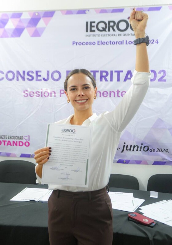 Con un total inédito en la historia de Cancún de 268 mil 283 votos a favor, la candidata de Morena, PT y PVEM, Ana Paty Peralta, recibió por parte del Instituto Electoral de Quintana Roo (IEQROO), su constancia de mayoría y validez que la acredita como presidenta municipal electa de Benito Juárez.