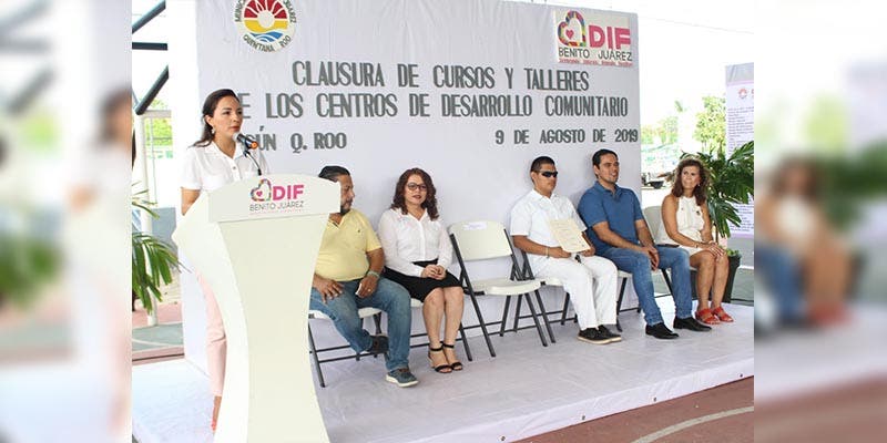 La Directora General del Sistema DIF Benito Juárez, Lorena Solís, en representación de la Presidente Municipal, Mara Lezama, encabezó la clausura de los cursos y talleres de los cuatro Centros de Desarrollo Comunitarios, en el domo de la Región 227.