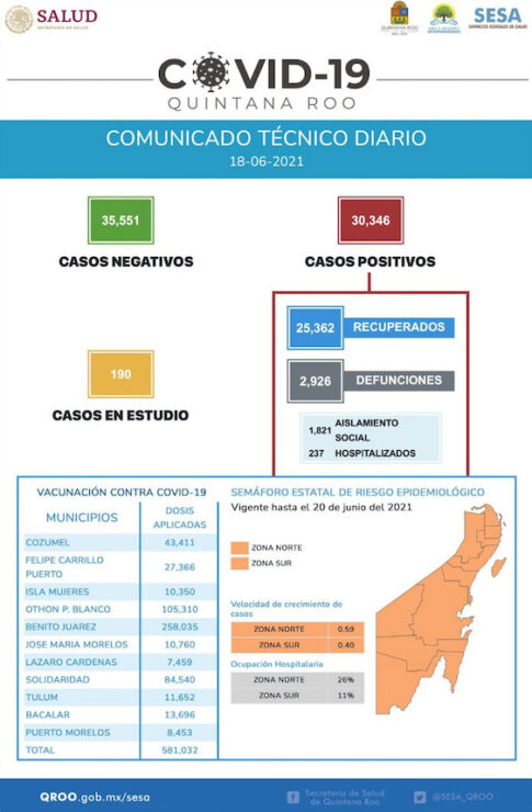 Te Puede Interesar: Rebasa Quintana Roo los 30 mil contagios por covid-19