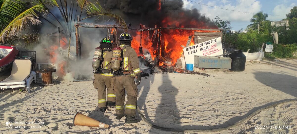 Esta mañana se registró un incendio en una palapa de pescadores, en la Supermanzana 85 la delegación de Puerto Juárez.