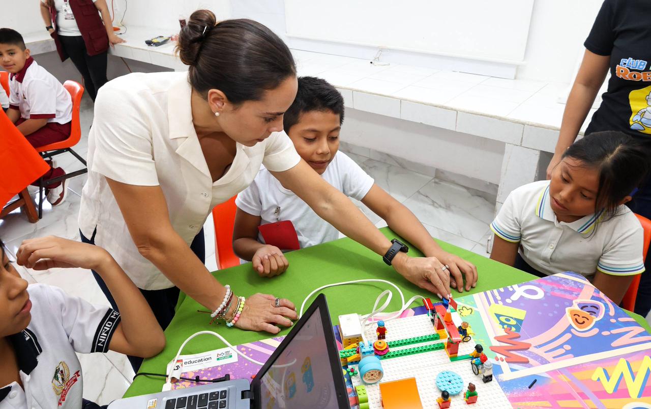 Seguidamente, la Presidenta Municipal entregó ocho tabletas al Club de Robótica “Balam”, que pertenece a esa institución académica y forma parte del Programa de Robótica LEGO Educación desde el 2023, el cual impulsa un modelo educativo, creativo e innovador para que las alumnas y alumnos desarrollen el pensamiento crítico y científico, a través de la tecnología y empleo de materiales de esa marca para construcción.