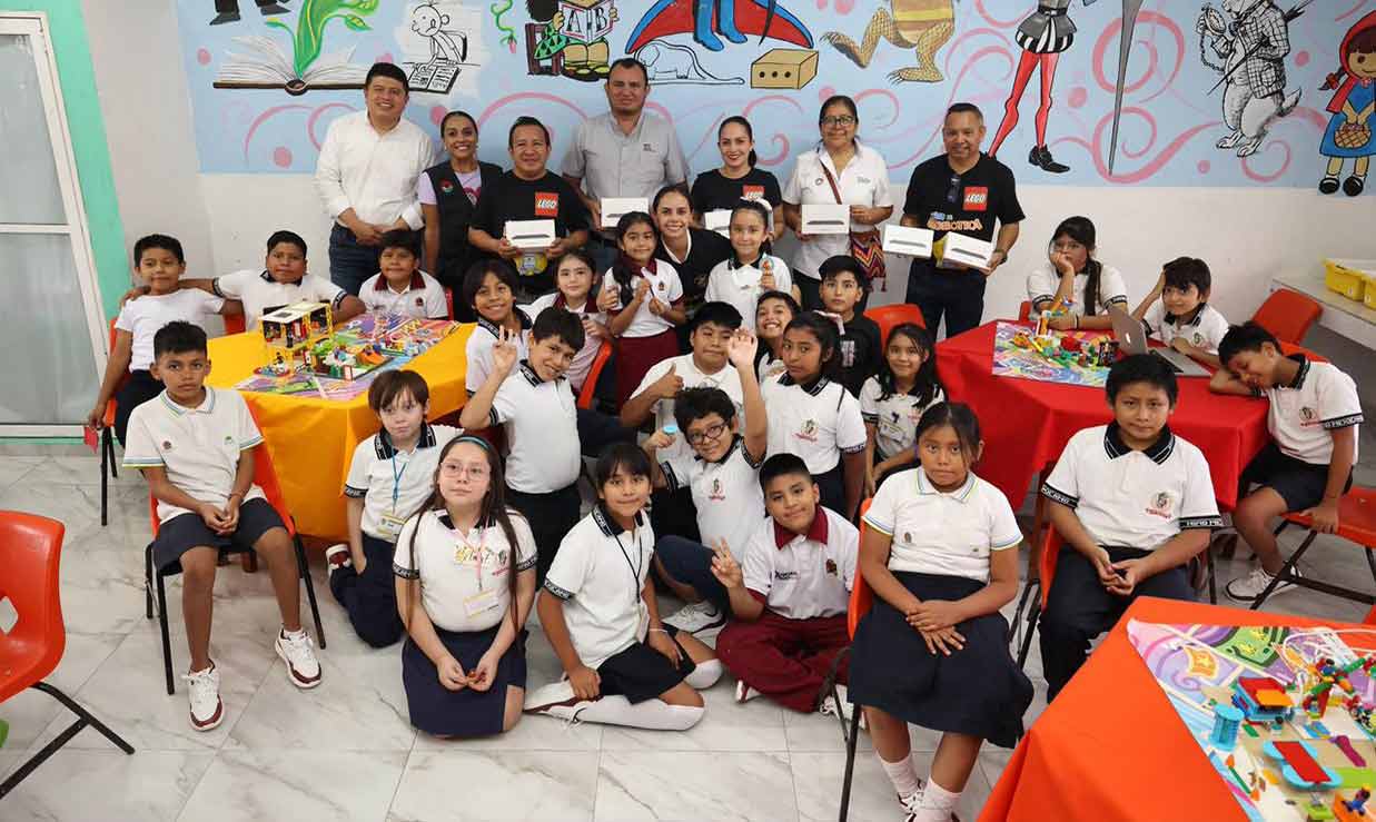 Seguidamente, la Presidenta Municipal entregó ocho tabletas al Club de Robótica “Balam”, que pertenece a esa institución académica y forma parte del Programa de Robótica LEGO Educación desde el 2023, el cual impulsa un modelo educativo, creativo e innovador para que las alumnas y alumnos desarrollen el pensamiento crítico y científico, a través de la tecnología y empleo de materiales de esa marca para construcción.