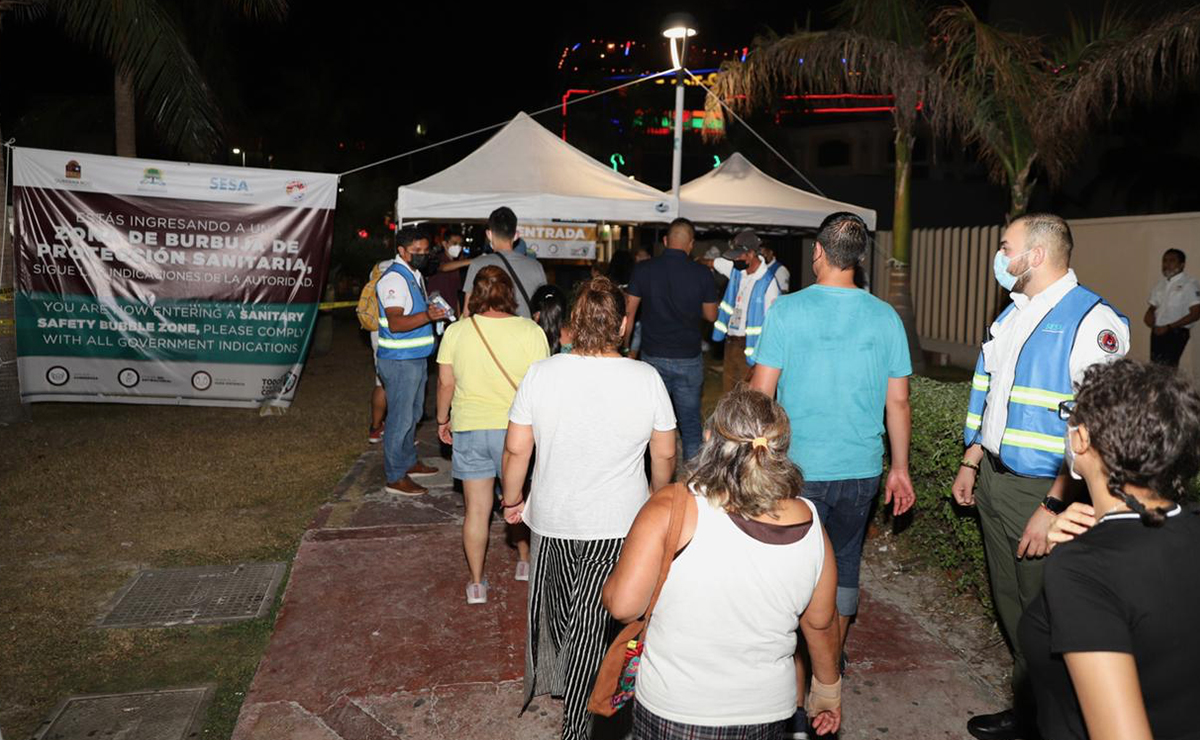 Los horarios de operación de estas burbujas son de 8 de la noche a una de la mañana en tres filtros sanitarios que sellan Punta Cancún en la zona hotelera y donde se han tenido resultados con un total de 13 mil 621 personas atendidas.